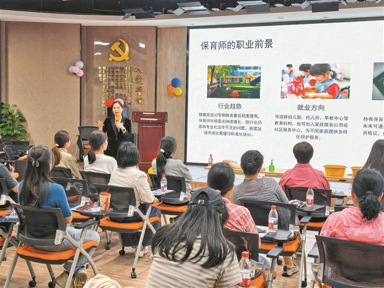 因此,在龙华区工匠培训基地,龙华围绕先进制造、人工智能与智能制造、现代服务、现代设计等领域,累计开展培训超300场、惠及9200多人次,有效带动全区培训技能人才超6万人。同时,“粤菜师傅”“南粤家政”“广东技工”三项工程持续向街道社区延伸扩展。例如,覆盖各街道设立南粤家政服务站,提供家政护理“培训—考证—推荐就业”全链条服务,年均培训超2000人次。为进一步提升便利性,龙华联合职业院校、大师工作室、职培机构及优质企业,创新推出“周末充电日”系列技能入门培训,无论你是自由职业者、企业员工,还是全职妈妈,都能在家门口找到适合自己的技能提升课,真正实现“想学就能学”。