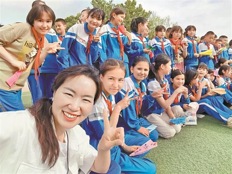 带着这份觉醒,田丽创办“小时光文学社”,把自创座右铭“戍边战士守卫国土边疆,援疆教师守护文化边疆”挂在了文学社墙上。她倡导学生阅读文化书籍,3年来,收集师生阅读报告600余份、学生日记逾1万份;她开设“校园小记者”“少年作家养成班”“AI赋能读写”等社团,开发10余门课程;她联合深圳家委编辑25期《时光小报》,通过网络让全国读者都看到了新疆娃笔下的好故事……收获数万新疆家长关注、点赞、留言。在她的推动下,深圳南湾学校、南山作协、喀什地区儿童文学研究会签约成立“深喀儿童文学阅读创作联盟”;田丽还探索把文学社模式复制到喀什的6所学校……