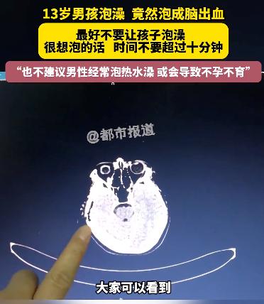 近日,河南郑州一13岁男孩到澡堂洗澡,泡了20分钟搓背时,师傅突然发现孩子没有反应,紧急送医检查后发现竟然已脑出血!医生介绍,问诊时孩子父母称澡堂温度过高,差不多有40℃,再加上孩子泡澡过程中未及时补充水分,导致出现了颅内出血。
