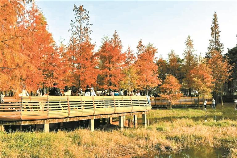 要说近期深圳的“网红”,那落羽杉一定位列其中。每年的12月至次年2月,这座四季常青的城市便会被一抹抹热烈的红点亮——各大公园的落羽杉褪去“青涩”,换上火红的“新衣”,为深圳营造满满的冬日氛围。