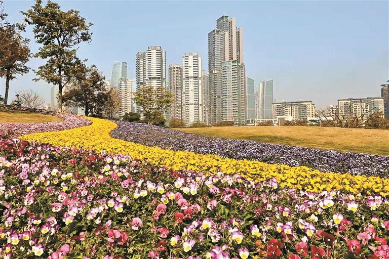 桂湾公园内的三色堇花海。