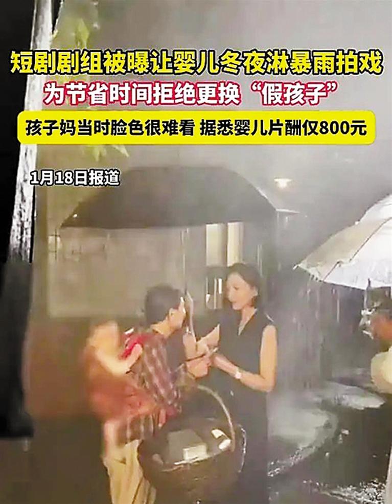 深圳新闻网2026年1月23日讯(深圳报业集团记者 白帆)近日,#短剧淋雨婴儿片酬仅800元#话题强势登上热搜榜首,短剧演员邢昀在社交平台的爆料引发全网对儿童演员权益保护的激烈讨论。