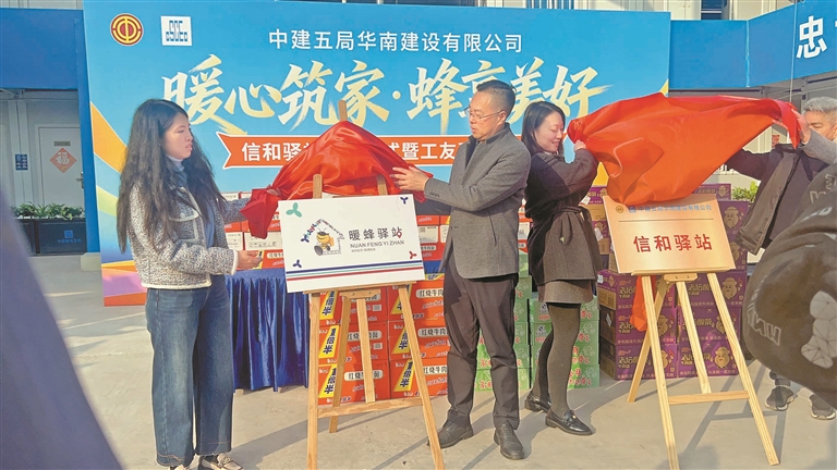 龙华新闻讯(记者 宋彪 通讯员 周泳庄/文 记者 陈建华/图)1月23日下午,龙华区首家工会建筑工人“暖蜂驿站”——“信和驿站”在观湖街道樟坑径社区正式揭牌启用。该驿站由樟坑径社区携手中建五局,依托应急综合救援和科普教育基地项目工地打造,聚焦一线农民工实际需求,成为名副其实的“暖蜂驿站”。