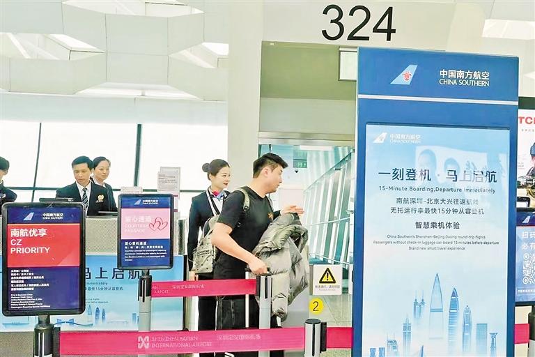 自1月27日起,中国南方航空在深圳-北京大兴航线全面推出“一刻登机”服务,这是南航在深圳的首条“一刻登机”航线,后续将逐步扩展至其他深圳始发航线。