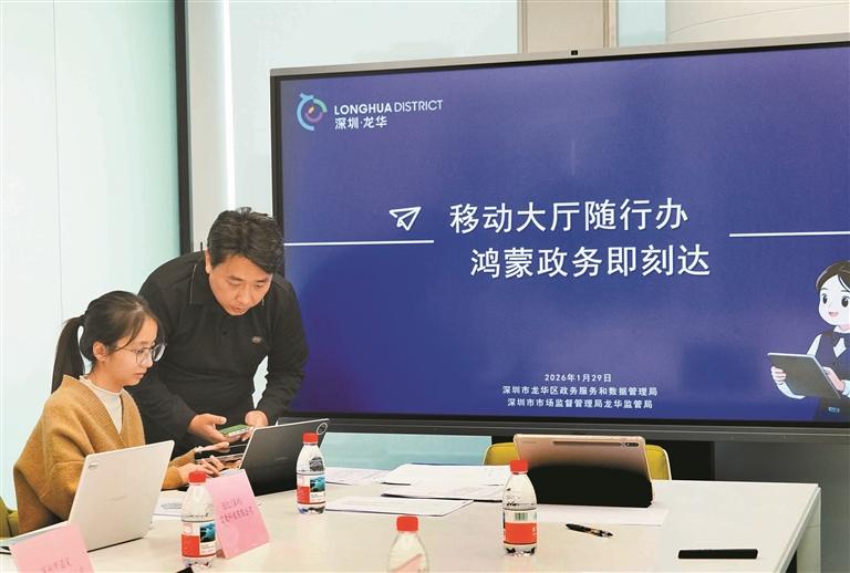 1月29日,龙华全市首创“鸿蒙移动政务大厅”,在深圳北站港澳青年创新创业中心正式启用。龙华区政务服务和数据管理局联合市市场监督管理局龙华监管局,组织鸿蒙慧联政务服务专班,携带鸿蒙移动终端主动进园区、上门送服务,让企业现场体验像移动支付一样便捷的智慧办事新流程。