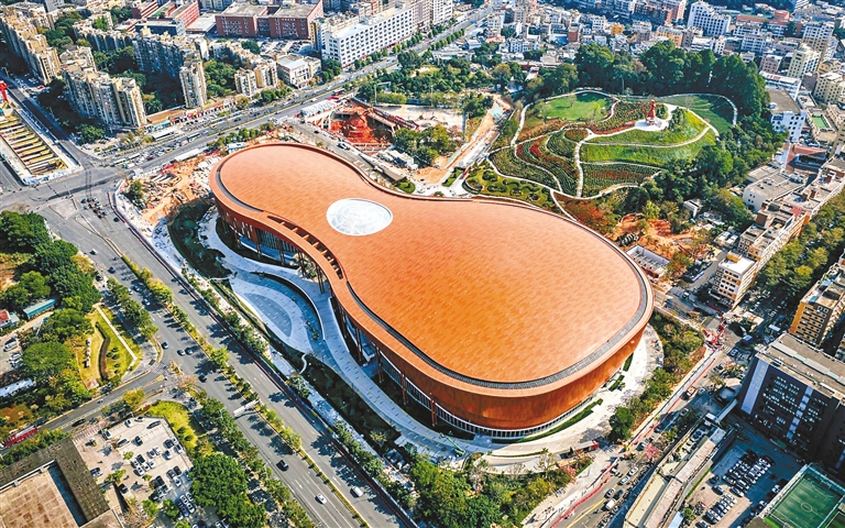 ▲龙岗国际艺术中心造型宛如“巨琴”。 深圳报业集团记者 宁杰文 摄