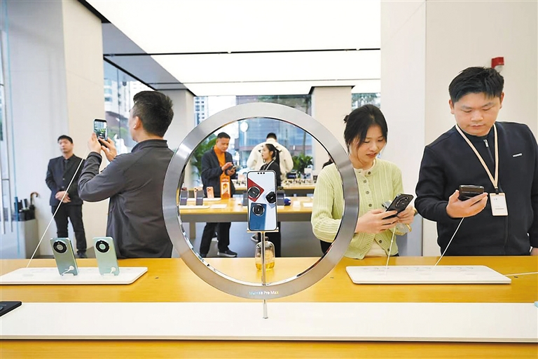 深圳新闻网2026年2月6日讯(深圳报业集团记者 王新根)2月5日,深圳卓越中心华为智能生活馆内人头攒动。一位女士拿着Mate 80标准版玩起了自拍:“这个颜值在我心尖上了,价格比上代还便宜了800块。要过年了,奖励自己一部新手机。”这样的场景,正在全国各城市的华为门店上演。