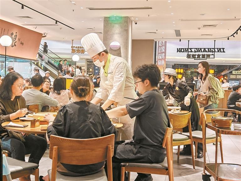 春节期间,市民在观澜湖新城吃团年饭。