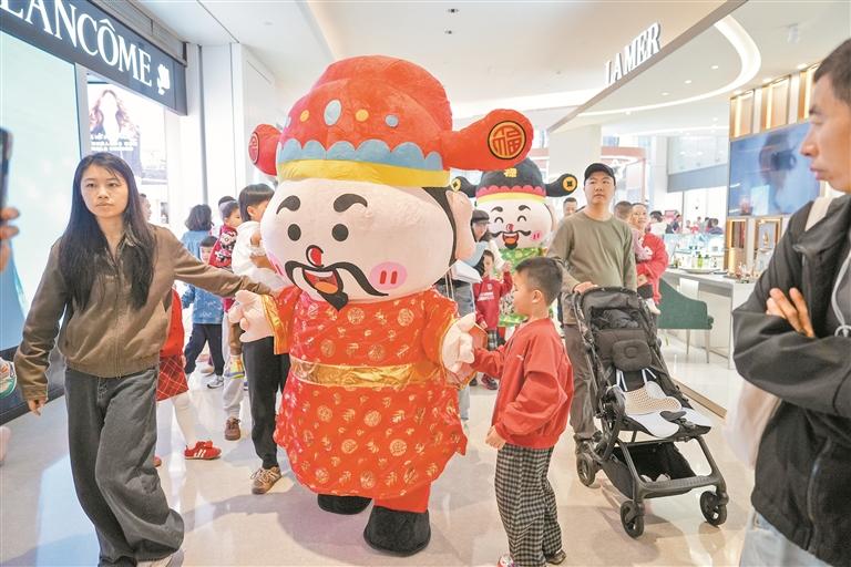 正月初一,“财神爷”在壹方天地巡游,向市民、游客送新春祝福。