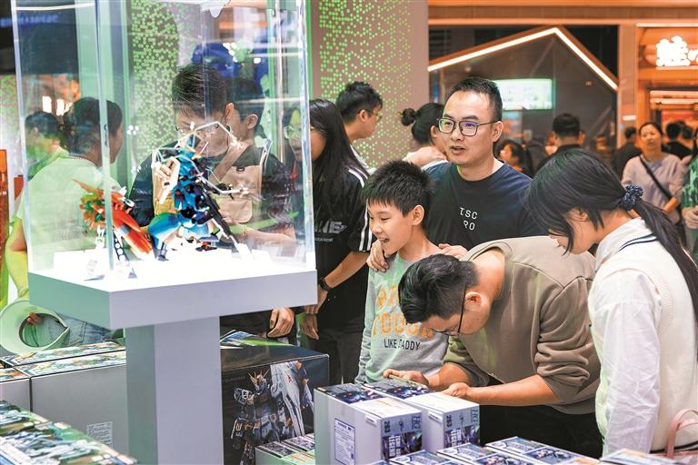 春节期间,宝安壹方城人潮涌动,各种潮玩机器人吸引家长和孩子们的关注。深圳特区报记者 毕晗 摄
