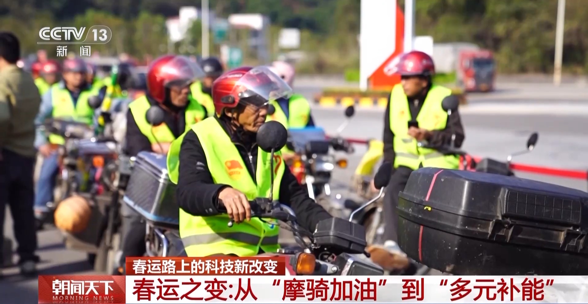 中国石化广东石油分公司代表 冯东明:摩骑规模在逐步减少,也从最初给他们提供免费加油、热饮热食、医疗服务、车辆检修等一系列20多种服务,现在在向油气氢电服务等综合的能源供应去转型,让更多的人感受到春运回家的温暖、社会给予的温暖。
