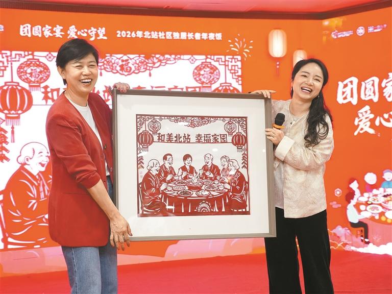 龙华新闻讯(记者 王雪敏 通讯员 熊大志 李土珍/文 记者 蔡维泽/图)除夕团圆日,温情满北站。2月16日上午,民治街道北站社区党群服务中心内张灯结彩、暖意融融,由社区党委主办的“团圆家宴·爱心守望”2026年独居长者年夜饭活动温情启幕。社区联动爱心企业、志愿者及热心居民,为辖区30余位独居长者送上专属团圆饭,让独居老人感受家的温暖,让“独居”不独、温情常在。