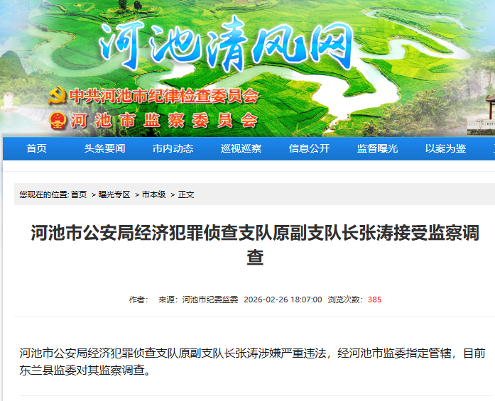 2月26日,据河池市纪委监委消息。
