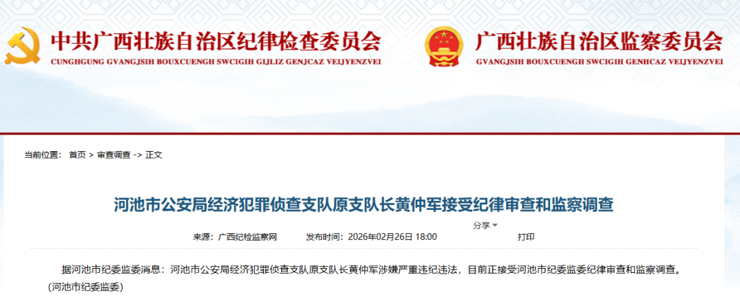 2月26日,据河池市纪委监委消息: