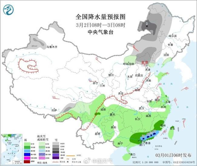 3月2日至3日,新疆北部、西北地区东部、内蒙古中东部、东北地区中北部、川西高原、华北南部、黄淮北部及西藏东部等地部分地区有小到中雪或雨夹雪,局地大雪或暴雪。