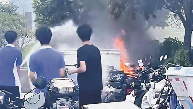 好险!电动自行车突然起火,旁边还有煤气罐 三名高中生秒变“消防小战士”