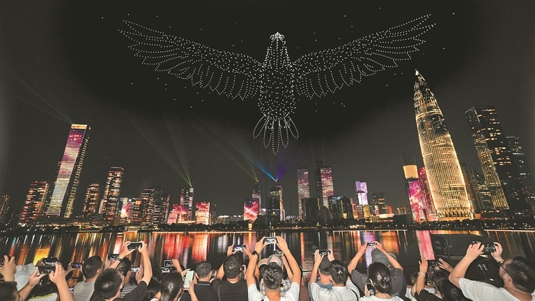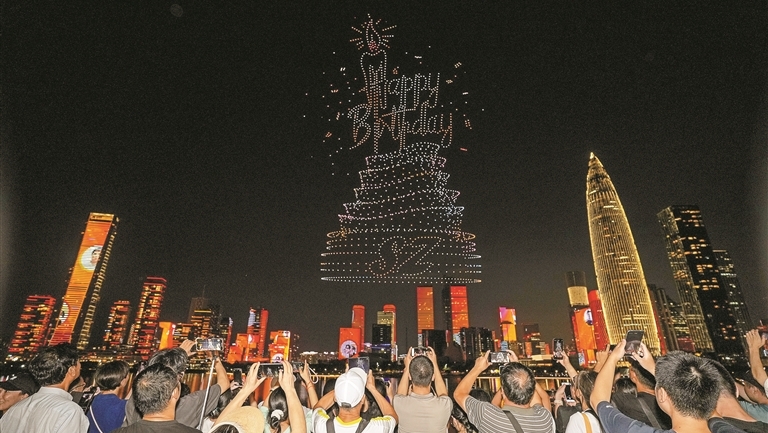 1.2万架无人机升空 全市地标同时亮灯 深圳夜空被市民热情点燃