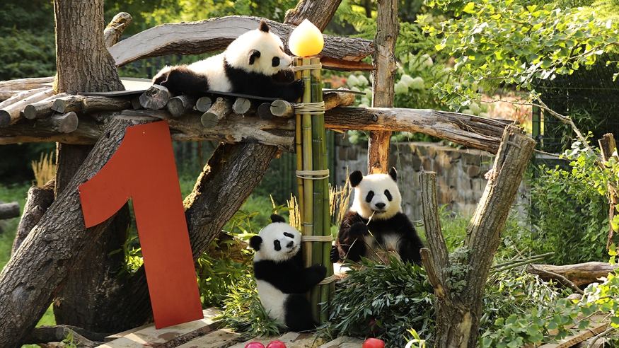 在德出生的第二对大熊猫双胞胎迎来一岁生日