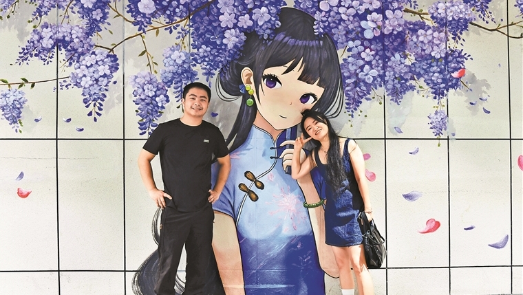 国潮风绘画墙亮相岗厦北枢纽西区 “深圳之眼”飘来“簪花少女”
