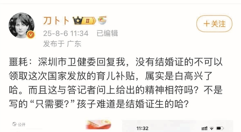 没有结婚证领不了育儿补贴?深圳卫健委回应
