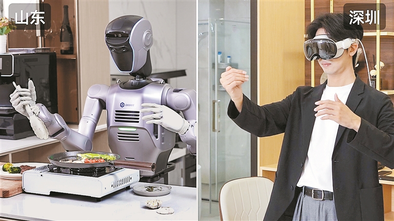 工程师深圳发指令 机器人山东煎牛排 越疆人形机器人实现精准远程操控