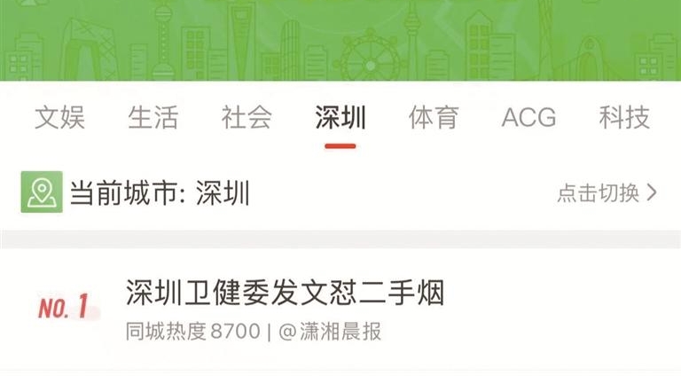 深圳卫健委怒怼二手烟冲上热搜 深圳成“烟味最淡”城市之一