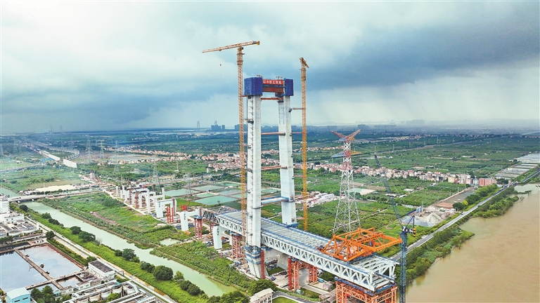 深江高铁洪奇沥水道公铁大桥主塔高度突破200米