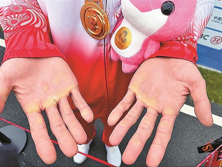勇夺开幕以来广东首金 倪旭林:手上的老茧得用刀削