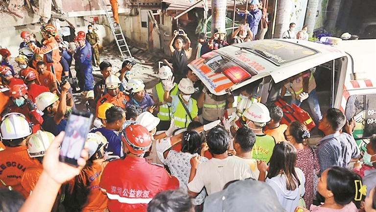 深圳公益救援队在缅甸震区开展救援 救出被困近60小时幸存者