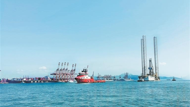 大型钻井平台靠泊深圳检修