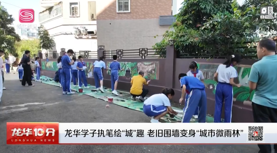 龙华学子执笔绘“城”趣 老旧围墙变身“城市微雨林”