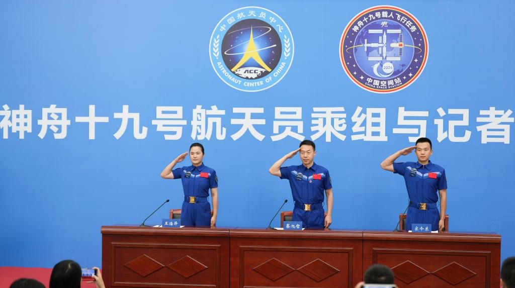 神十九航天员太空归来后首次公开亮相