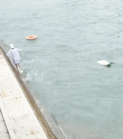 58岁阿姨智救落水者!栈桥边借救生圈化险为夷