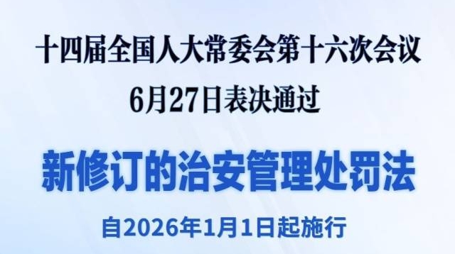 新修订的治安管理处罚法自明年元旦起施行
