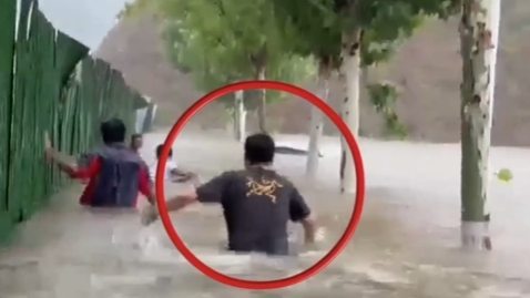 突降暴雨女子被困车内 多人蹚水破窗成功解救