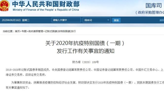 今年中央财政首批国债资金预算2379亿元已下达