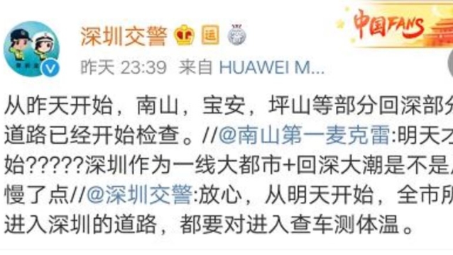 [全力防控肺炎疫情] 今起,所有进深道路查车测体温!不是所有湖北车都劝返