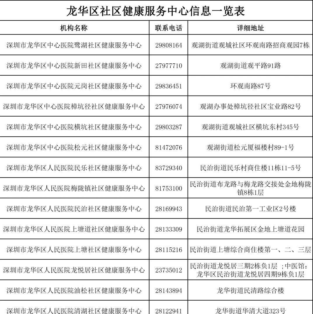 最新最全!龙华区发热门诊和各社康中心信息汇总