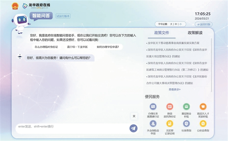龙华在全市率先上线政府网站GPT