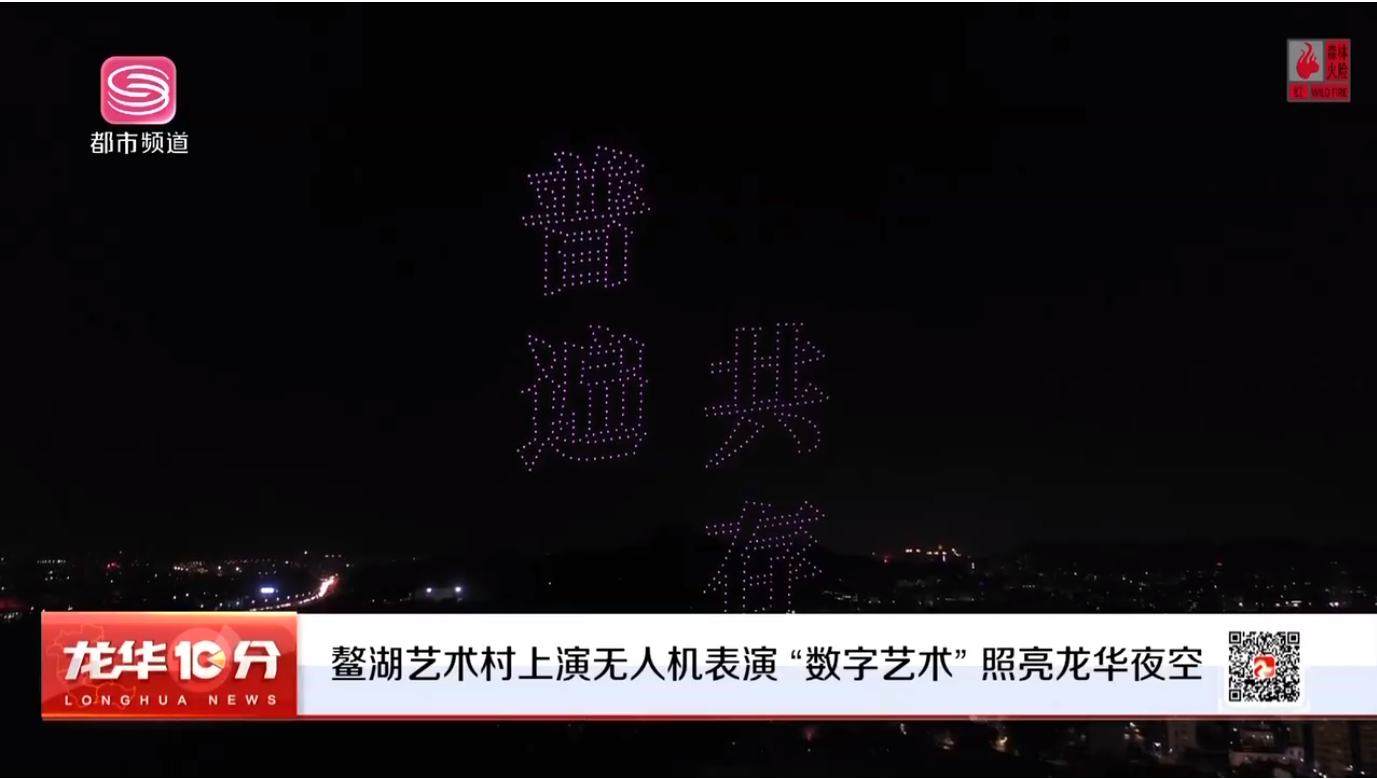 鳌湖艺术村上演无人机表演 “数字艺术”照亮龙华夜空