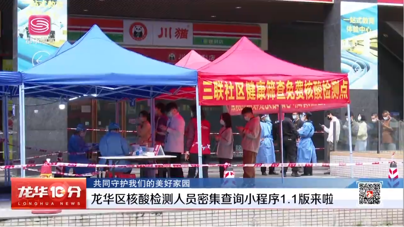 龙华区核酸检测人员密集查询小程序1.1版来啦