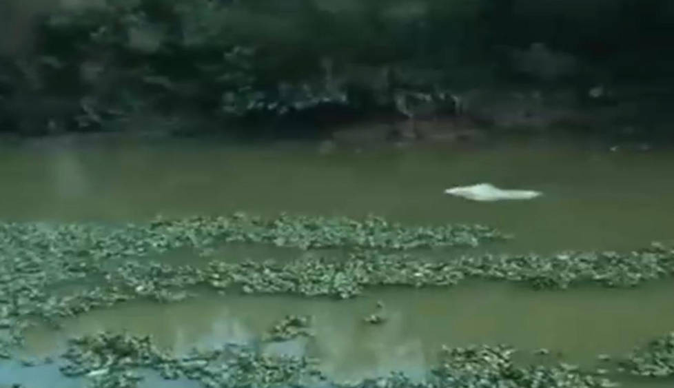 珍稀白海豚现身广东一河流引围观
