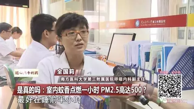 南方医科大学附属第三医院呼吸内科副主任全国莉表示:“蚊香产生的颗粒物质跟平常人们理解的汽车尾气或空气污染的颗粒物质,成分是不同的,其实蚊香的有效成分是除虫菊酯杀虫剂,这个成分含量是非常小的,对人体几乎无害。” 不过医生也提醒大家,孕妇、婴儿和有呼吸道疾病的街坊们,使用这种蚊香还是要注意一下,可吸入颗粒物可能会诱发呼吸系统疾病。那么如何使用蚊香才安全呢?全国莉表示:“最好在睡前半小时点燃蚊香,然后密闭门窗,半小时后打开门窗,关上纱窗,这样既能杀灭蚊子,又可以让有害颗粒物得到挥发和释放。”