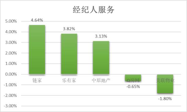 链家在经纪人服务方面净推荐率最高,为4.64%。乐有家与中原地产排名二、三位。