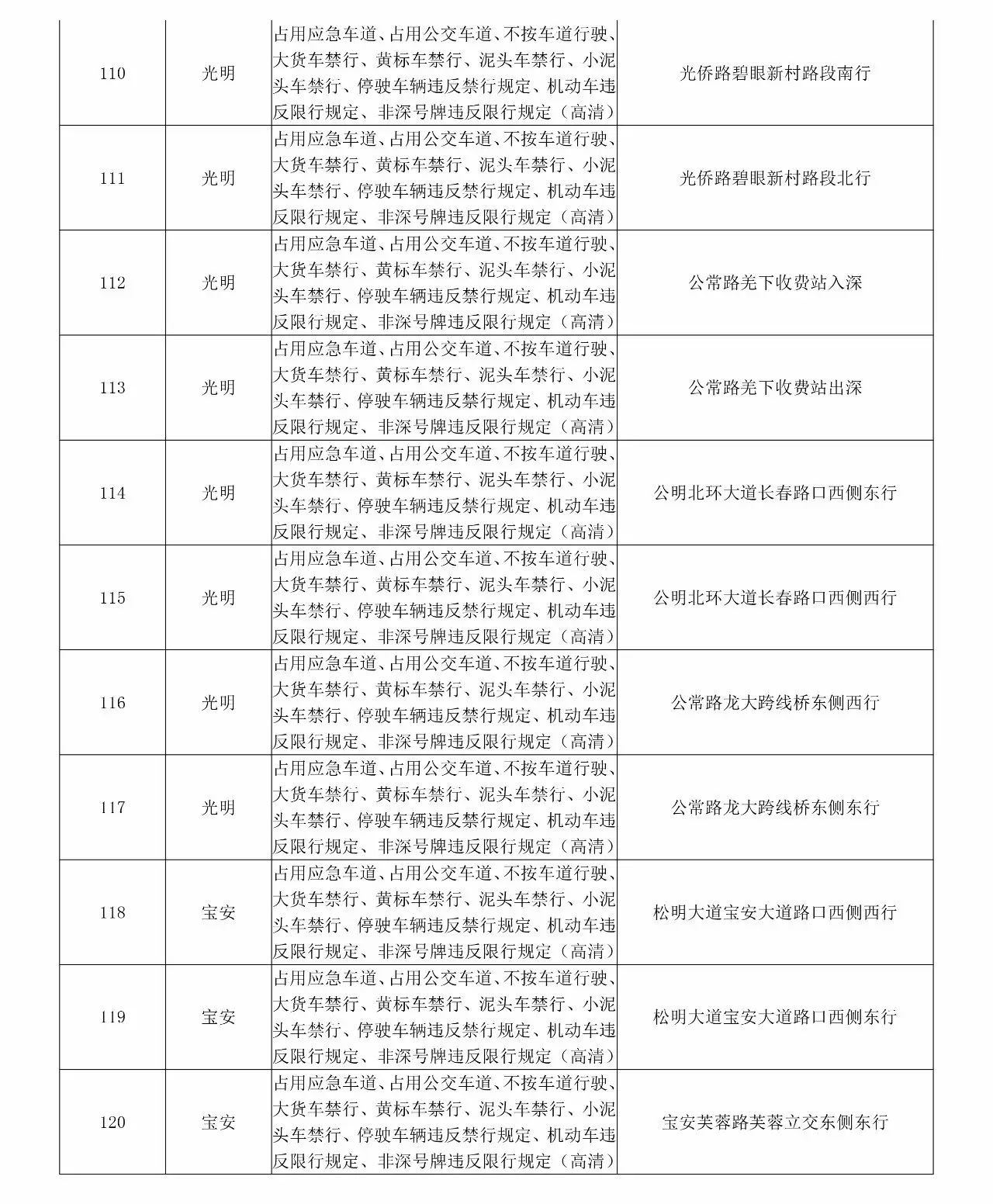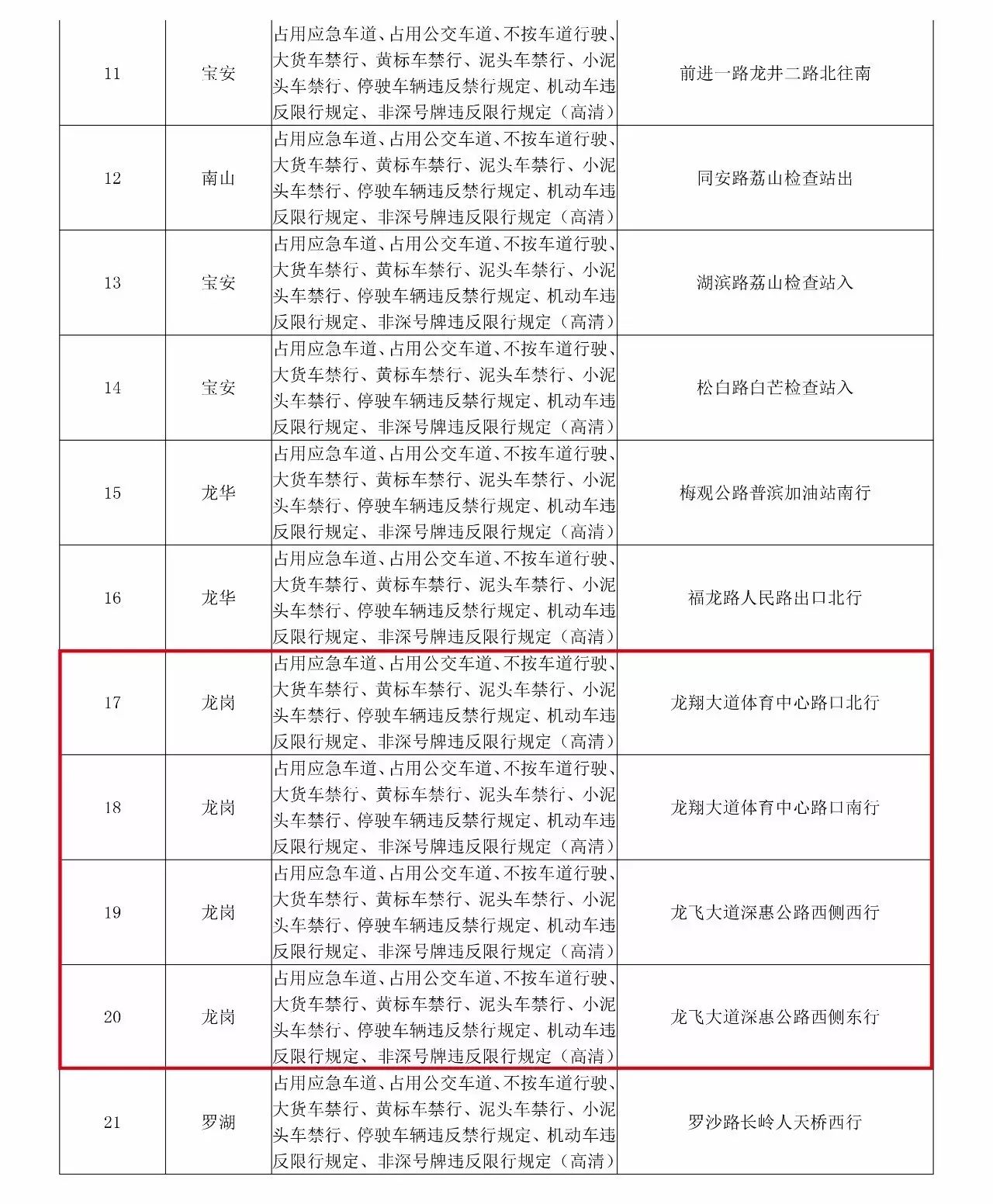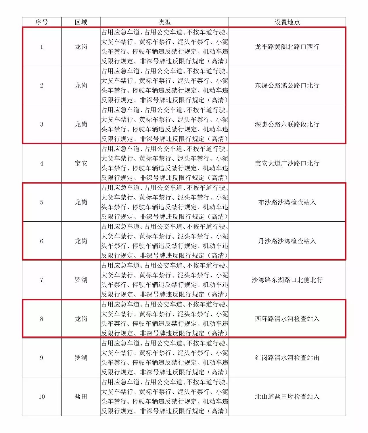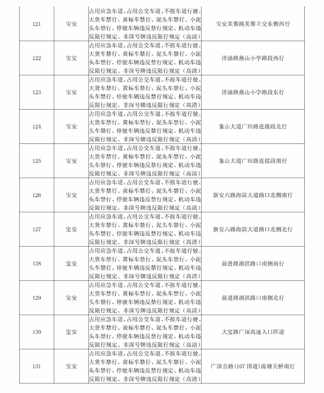 新闻提要 新增的执法设备主要集中在原特区外区域,分别为:福田区17套、罗湖区16套、南山区6套、盐田区3套、宝安区44套、龙岗区89套、龙华区24套、坪山区16套、光明新区20套、大鹏新区17套。