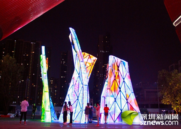 当天下午,公共艺术馆·龙舞展厅还举办了“动·静——深港青年艺术家交流展开幕式”,展出了来自深圳和香港两地的青年艺术家的60余幅作品,包含绘画、雕塑、多媒体等多种艺术形式。当晚,在“红立方”青云广场还举办了世界最大玻璃广场雕塑的亮灯仪式,这座名为“绽放”的玻璃雕塑是知名旅美艺术家盛珊珊的作品,由400余块艺术玻璃组成,包含了高山流水、动物、海洋、森林、花卉等元素,国内为数不多的采用开放式造型的公共艺术作品。