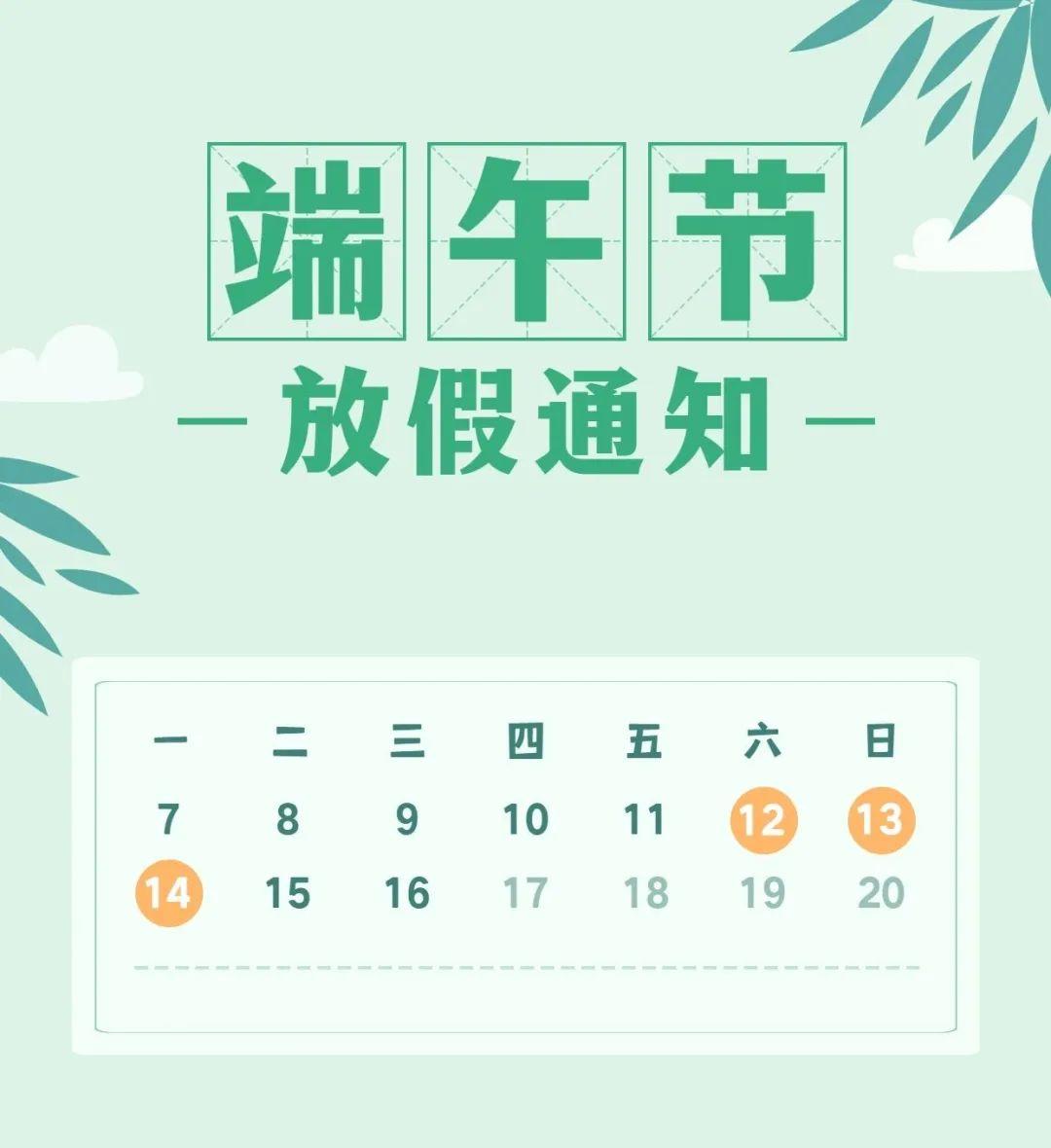 根据国家放假安排,2021年端午节假期为6月12日(周六)至6月14日(周一)共3天。