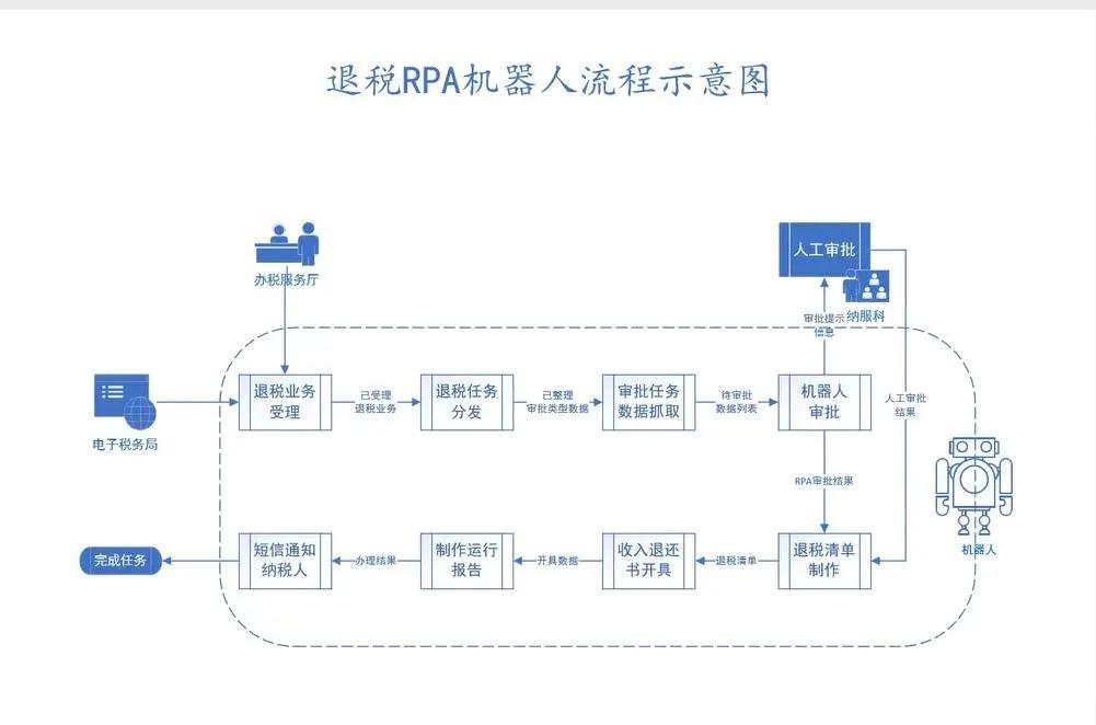 目前,聚焦一线科所的大体量业务,RPA机器人以虚拟劳动力的形式,已能够100%自动处理汇算结算等32个业务流程。