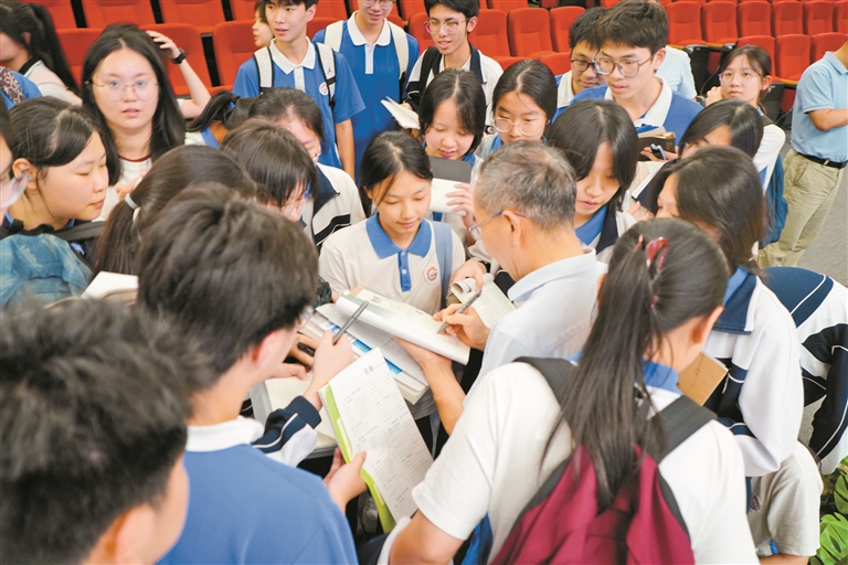 活动结束后,师生们怀着崇敬与激动的心情争相向院士求签名留念。