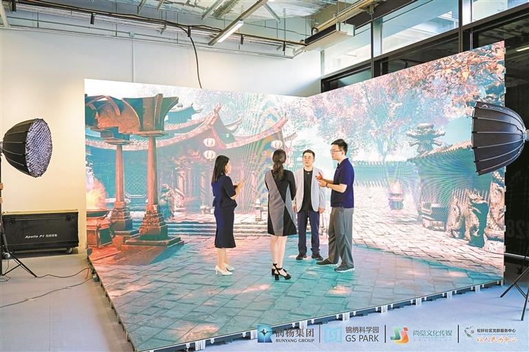锦绣科学园D座前广场的文旅市集热闹非凡,汉服旗袍体验、非遗版画展示、创意沙画文创等摊位,让参会者沉浸式感受微短剧服化道与传统文化魅力,尤克里里弹唱、非洲鼓演奏更添互动乐趣。太龙视觉打造的VR虚拟拍摄创作工坊成为焦点,其将《清明上河图密码》《凡人修仙传》等多部顶流影视剧同款虚拟拍摄技术“搬”到现场,嘉宾直观体验科技对微短剧创作的赋能,为后续合作奠定基础。